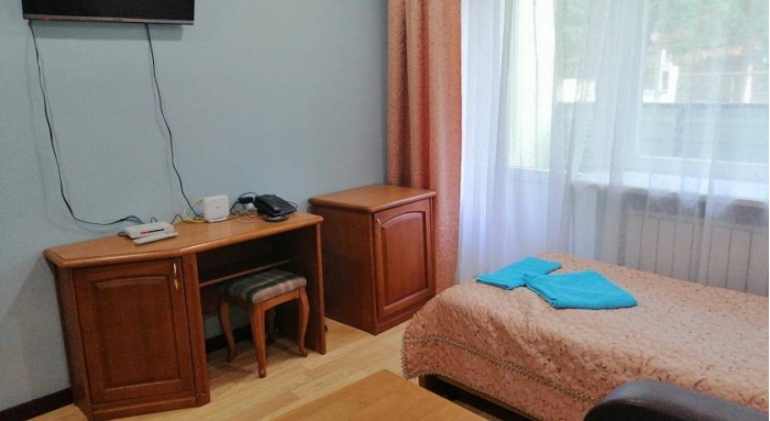Оснащение номеров: набор мебели, телевизор, ванная комната (душ или ванна), набор полотенец, Wi-Fi. В корпусе: кафе, бильярд, прокат чайника и утюга, банкомат.